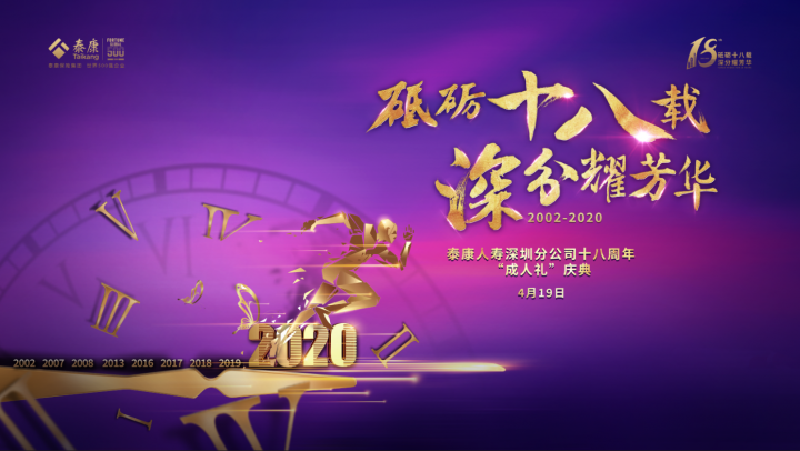 4月19日,“砥砺十八载,深分耀芳华”—2020年泰康人寿深圳分公司十八周年“成人礼”庆典成功举办。